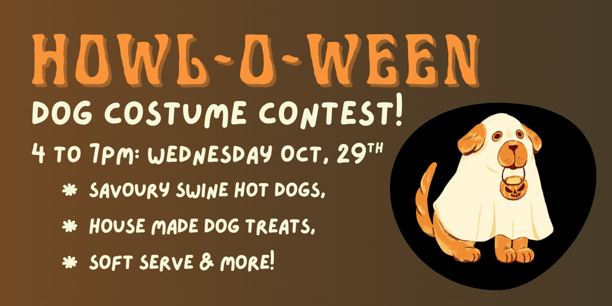 Show off your four-legged friends in fancy dress. We will have Hot Dogs, House Made Dog Treats, Soft Serve with Chocolate ‘Dirt’ Sauce & Gummy Worms as well as lots of early-Halloween fun!