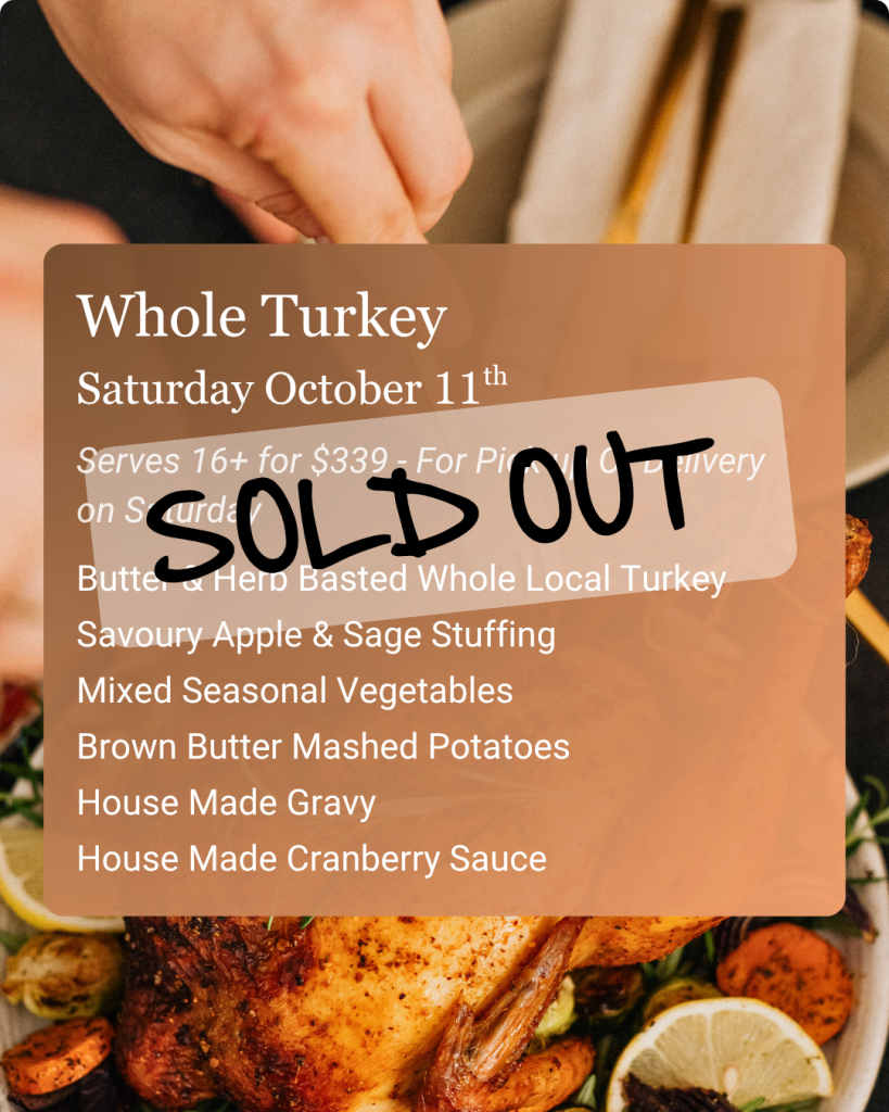 To place your order for Thanksgiving – give us a call; 613-695-0417 or send us an email; info@redapron.ca!