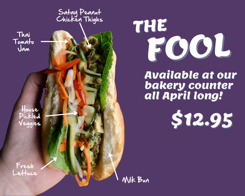 Satay Chicken, Peanut Sauce, Thai Tomato Jam, House Pickled Veggies & Fresh Lettuce on a Toasted Milk Bun. Enjoy this spin on a childhood classic PB&J!